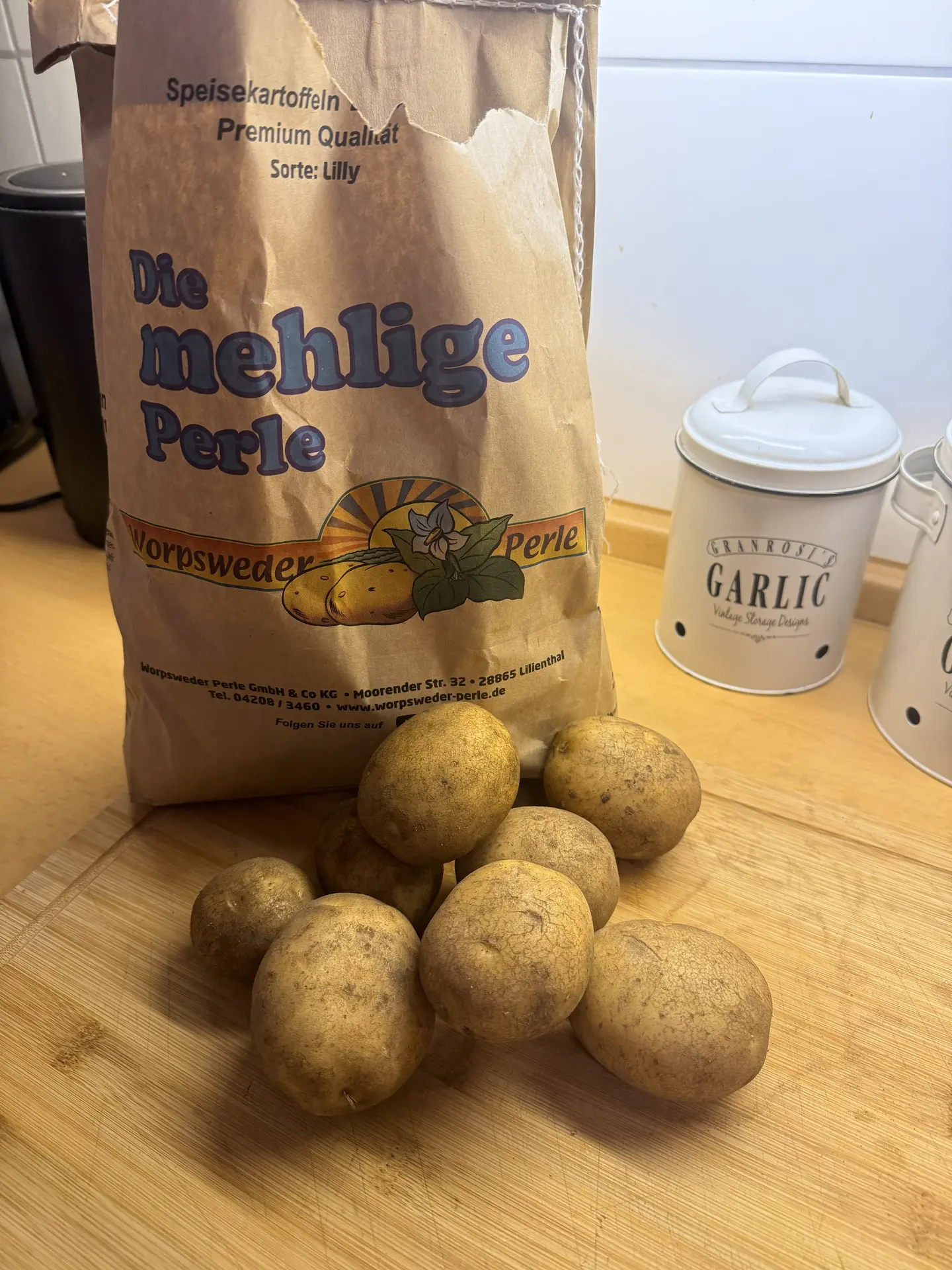 - 600 g Kartoffeln, und zwar Lilly, die mehlige Perle