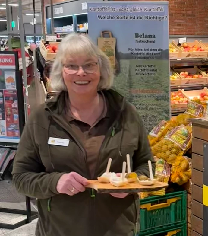 Ist bei uns seit Frühjahr 2023 in Vollzeit dabei. In den Märkten vor Ort als Ansprechpartnerin für die Gemüseabteilungen, zu Verkostungen für Endkunden oder bei verschiedensten Promotingaktionen ist Mara zu finden.